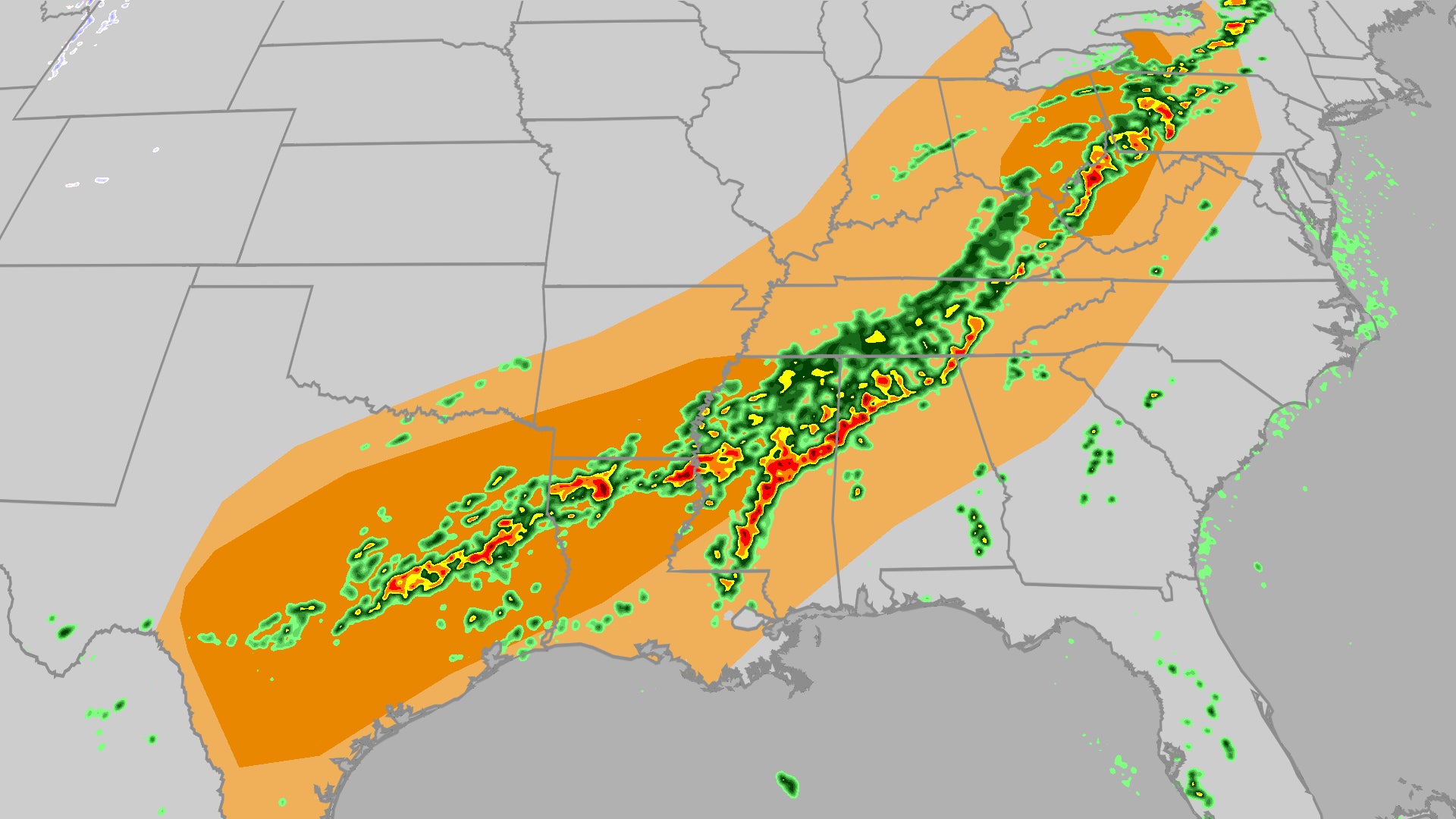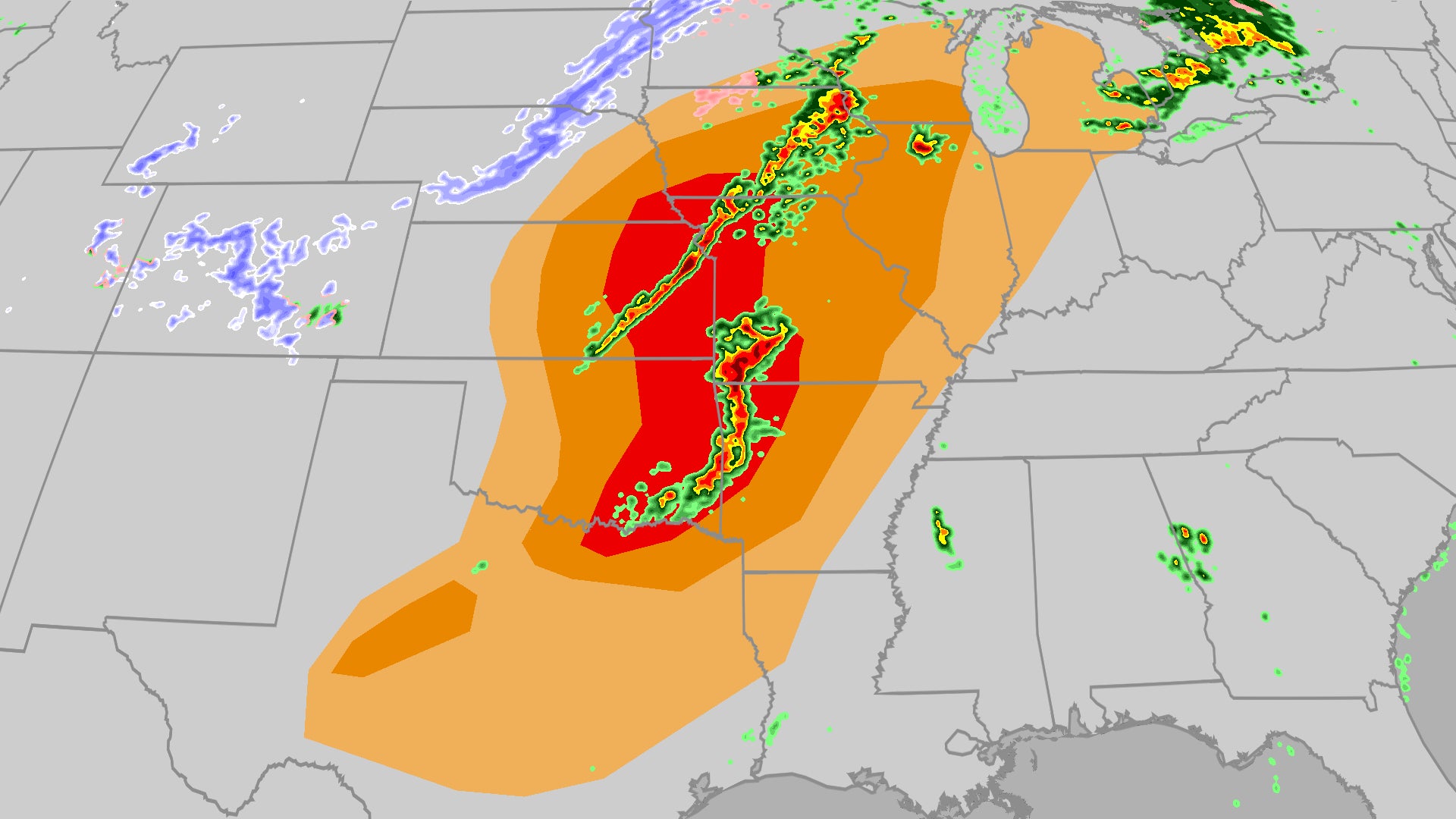 A severe weather outbreak is forecast Friday into Friday night with strong tornadoes, very large hail, destructive winds and flooding all on the table. The greatest chance for at least EF2 tornadoes and very large hail will be across eastern Oklahoma, eastern Kansas and western portions of Missouri and Arkansas. This includes places like Kansas City, Tulsa, Fort Smith, and areas just north of Dallas. Please have a plan in place and make sure you have multiple ways to receive warnings as severe weather is likely for many overnight. Here’s the latest hour-by-hour forecast.