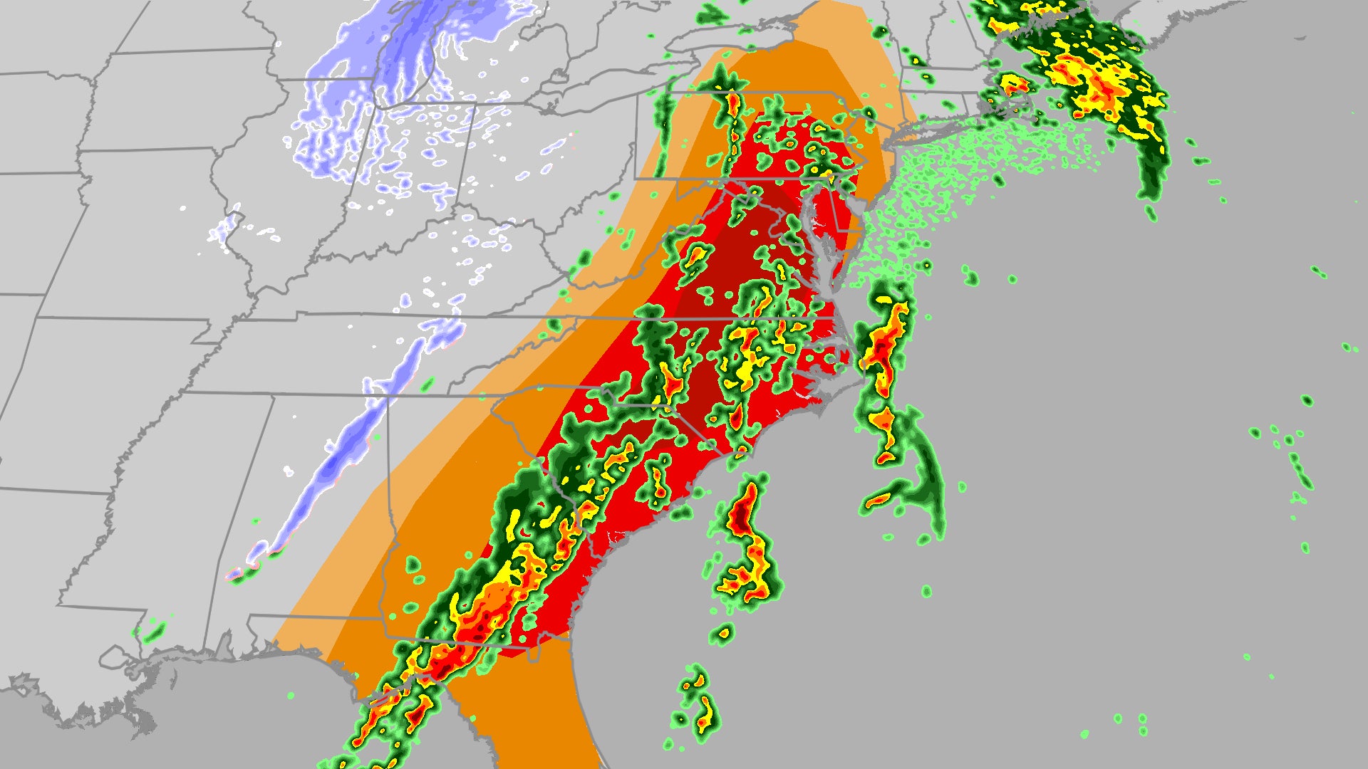 The mid-Atlantic is under a level 4 out of 5 severe risk today and this includes Washington, Richmond and Raleigh. Damaging wind gusts and a few tornadoes will be possible. There is potential for strong and long track tornadoes, so please have multiple ways to receive warnings and stay weather aware today. The overall severe threat stretches from New York to Florida, so expect widespread travel impacts. Here’s your latest hour-by-hour forecast.