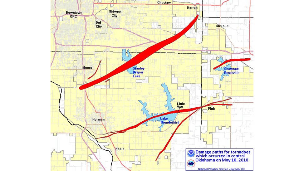 Tornado swath map on May 10, 2010. (Credit: National Weather Service - Norman, Okla.)