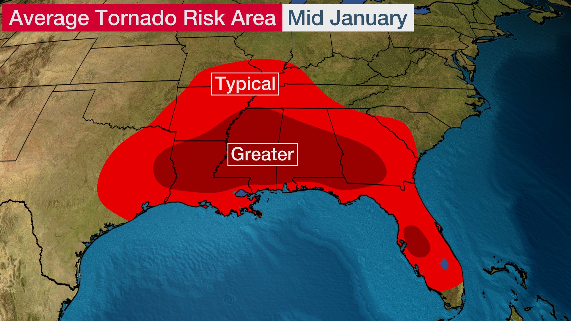 The South, and occasionally areas farther north, can't let its guard down from tornadoes in January.