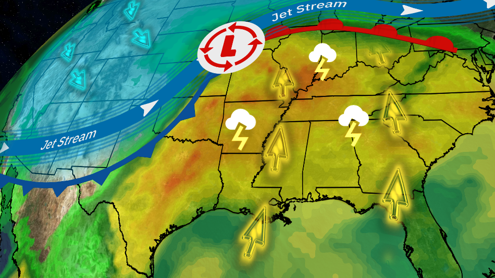 That's why the potential for tornadoes in the South is much lower in June compared to April. Although moisture is abundant across the South in late spring, the strong jet stream needed to help make conditions favorable for tornadic thunderstorms is usually absent.