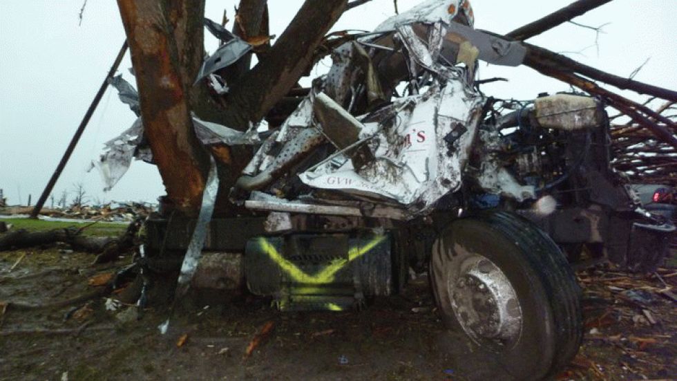 The Joplin, Missouri, EF-5 tornado of May 22, 2011, was powerful enough to shred and wrap this heavy-duty hauling vehicle around a tree.