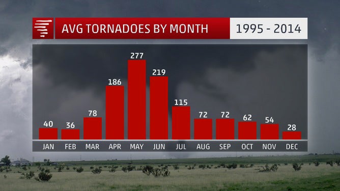The peak tornado months in the U.S. – April, May and June – are yet to come. On average, the U.S. tornado count more than doubles from March to April, reaching a peak in the month of May and remaining high into June.