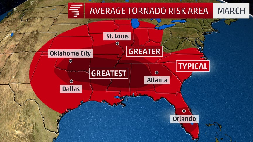 With jet stream winds still strong as we head into the spring months, and ample moisture returning north at times, the threat of tornadoes creeps a bit farther north, compared to February.