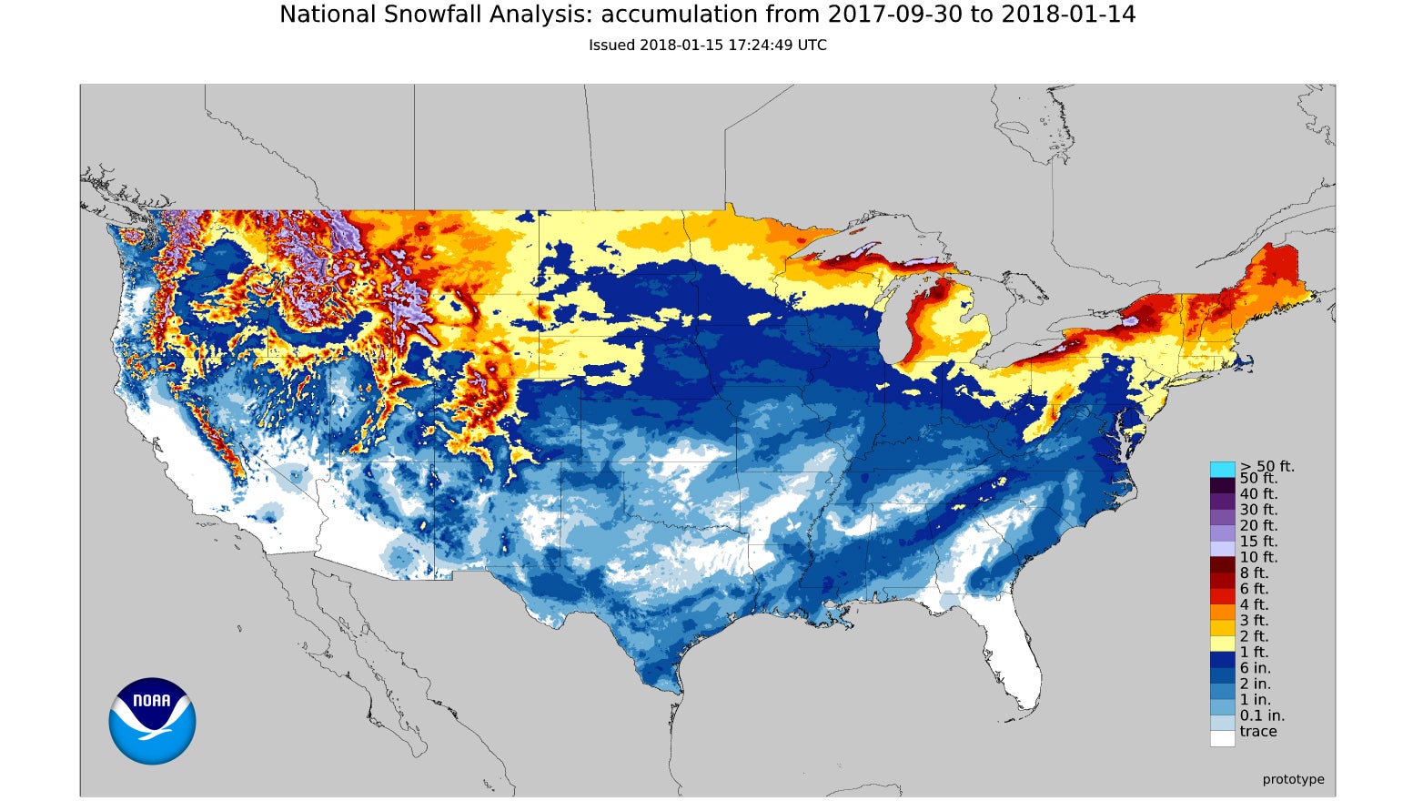 Estimated snowfall this season through Jan. 14, 2018.
