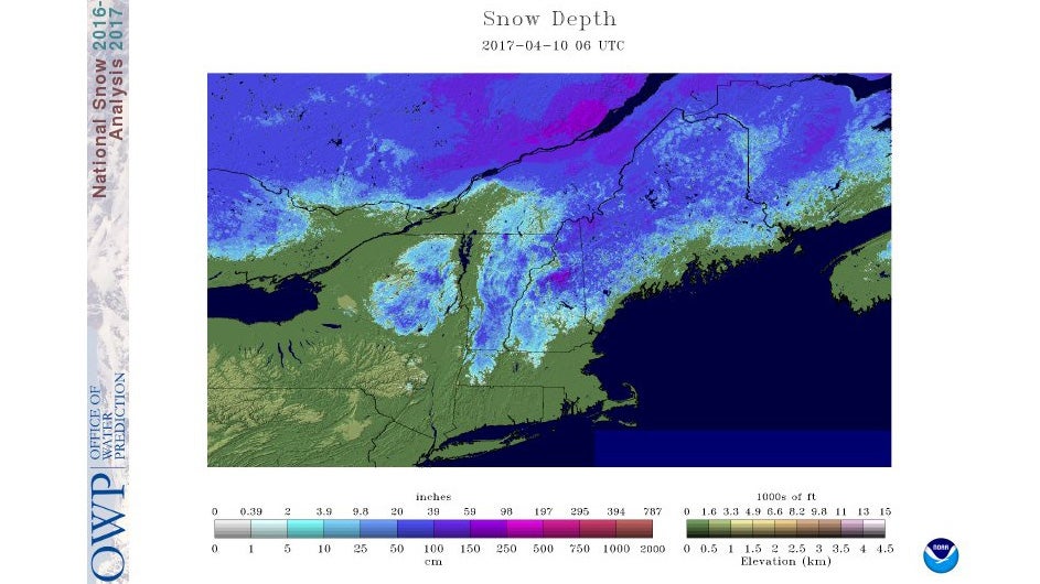 This is the estimated snow depth as of 2 a.m. EDT April 10.
