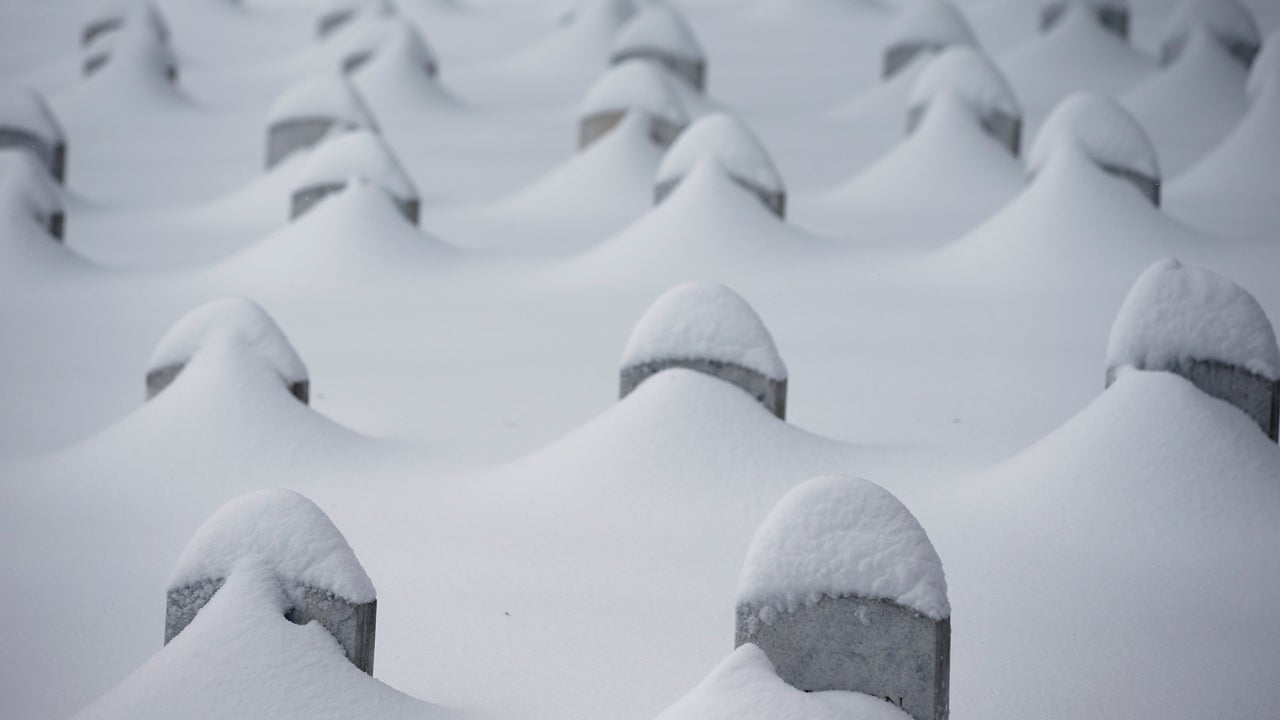 Headstones are nearly covered by snow at Arlington National Cemetery, Saturday, Jan. 23, 2016 in Arlington, Va. A blizzard with hurricane-force winds brought much of the East Coast to a standstill Saturday, dumping as much as 3 feet of snow, stranding tens of thousands of travelers and shutting down the nation's capital and its largest city.