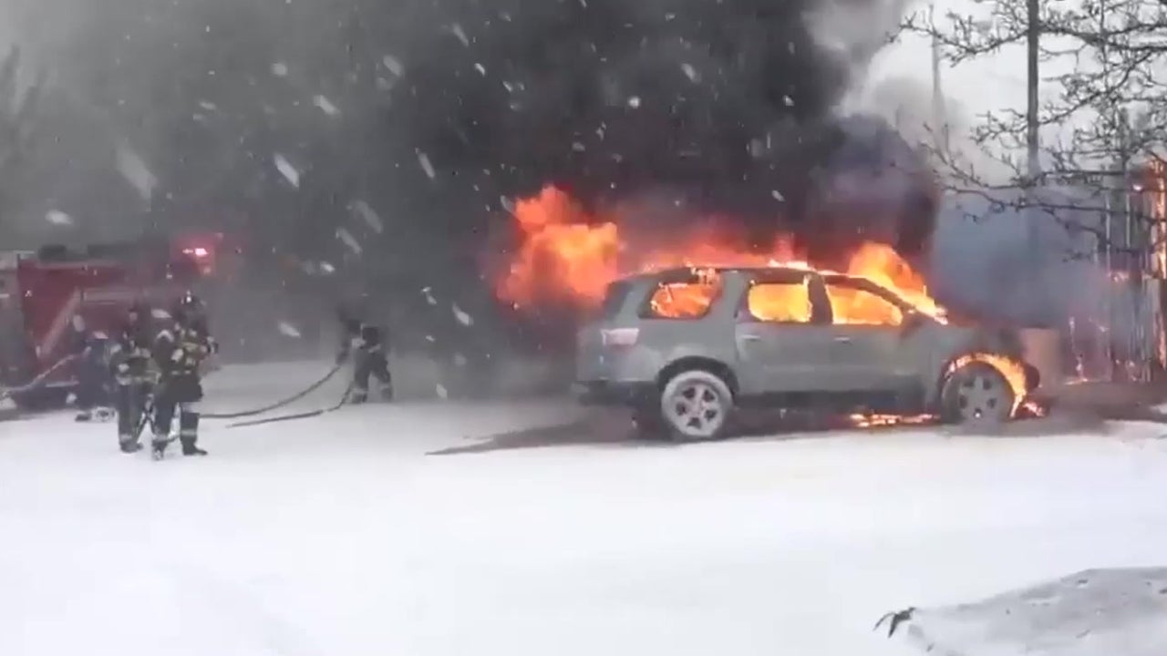 Fire and Ice: Car Ablaze in Blizzard - Videos from The Weather Channel