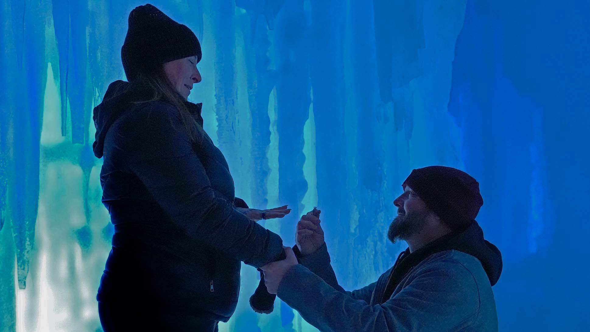 On opening day, at least one proposal occurred at the Ice Castles. Jessica Sullivan, of Fairhaven, Massachusetts, said “yes” after her boyfriend (now fiancee) Brian Jacques got down on one knee on the ice. “It’s a beautiful place,” Jacques told the Associated Press. “I definitely thought, this is the time and place to do it.”