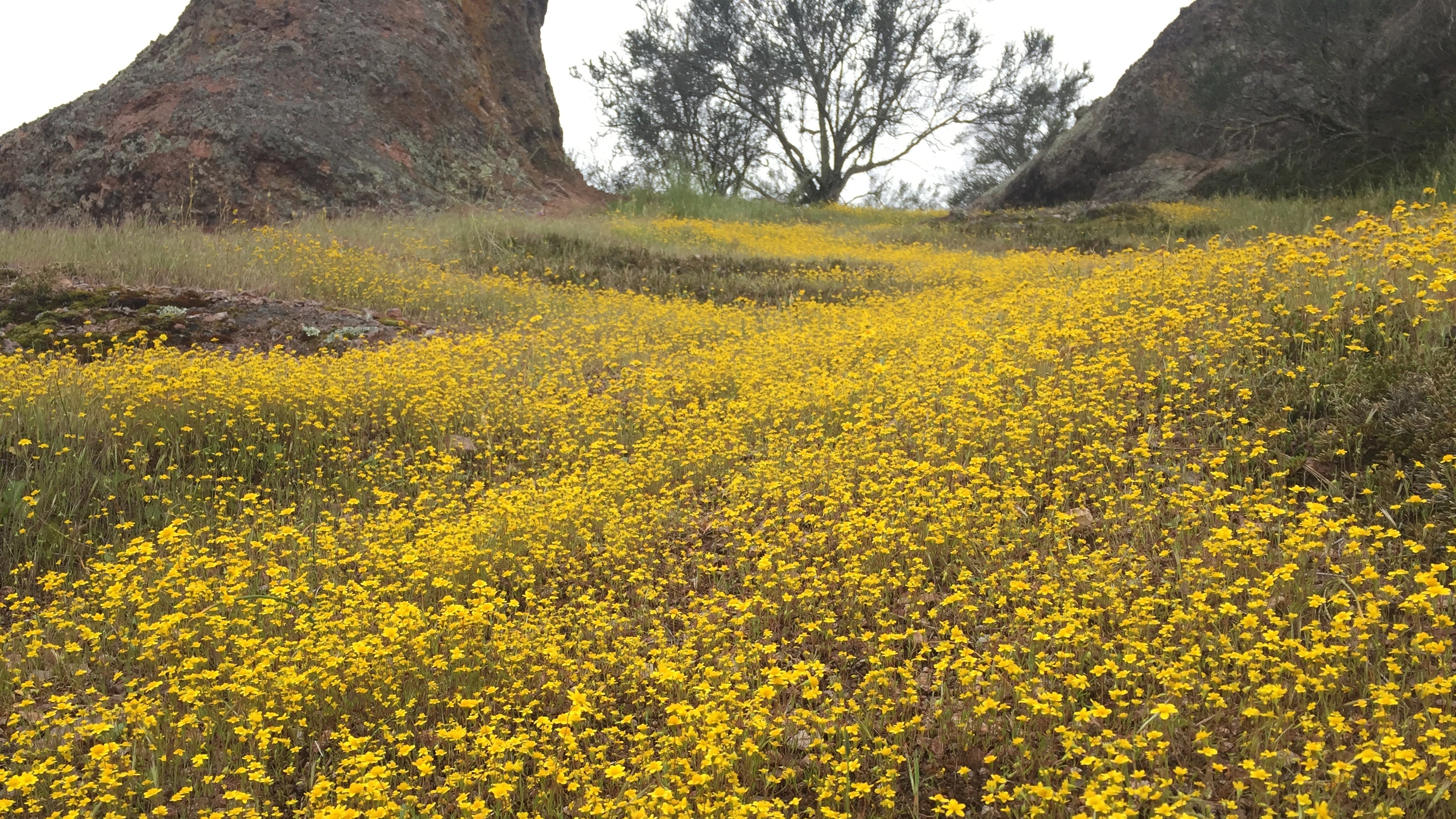 Goldfields bloom along the Rim Trail in Pinnacles National Park.