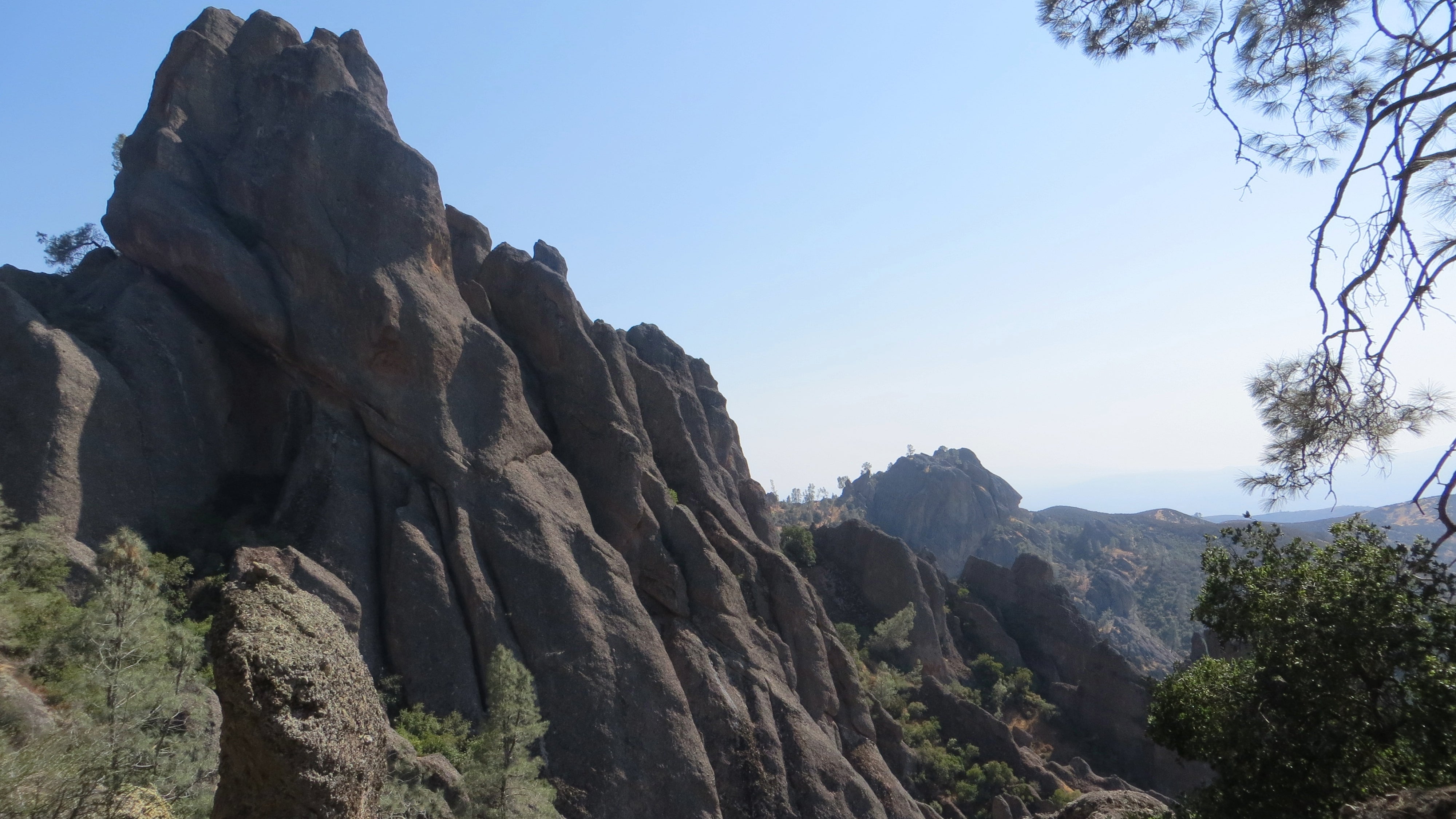 Towering rock formations are seen along the High Peaks Trail in Pinnacles National Park.