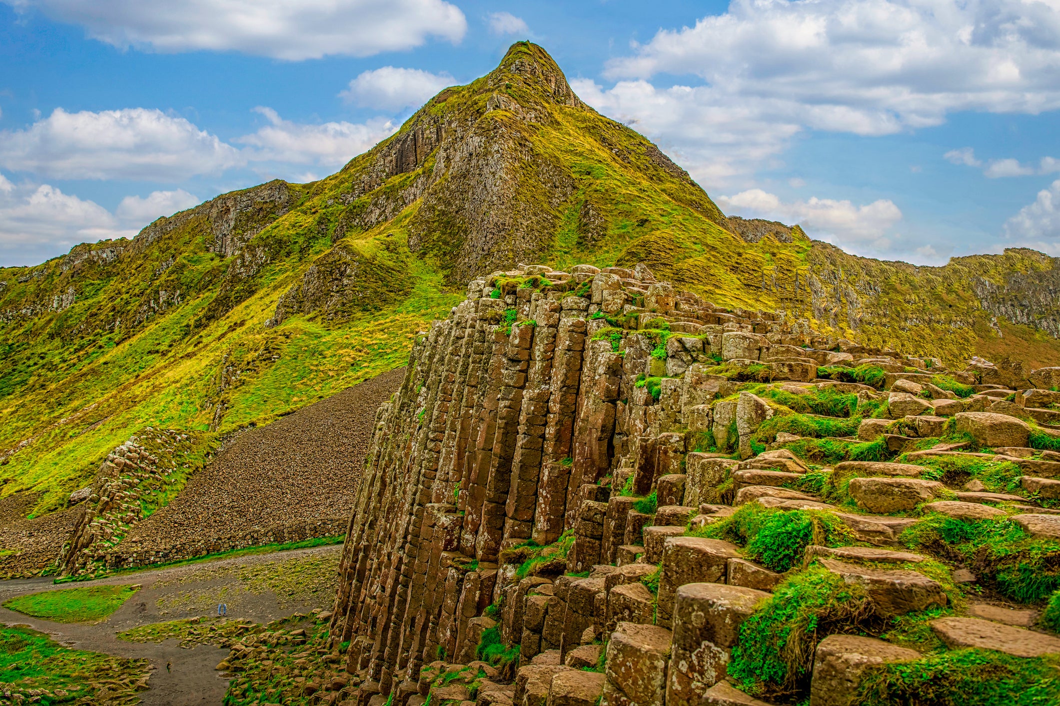In reality, the exceptional landscape of the Giant’s Causeway was born between 50 and 60 million years ago, when intense volcanic activity in the area created a volcanic plateau. Contraction occurred as the lava in the area cooled, leaving pillars of basalt.