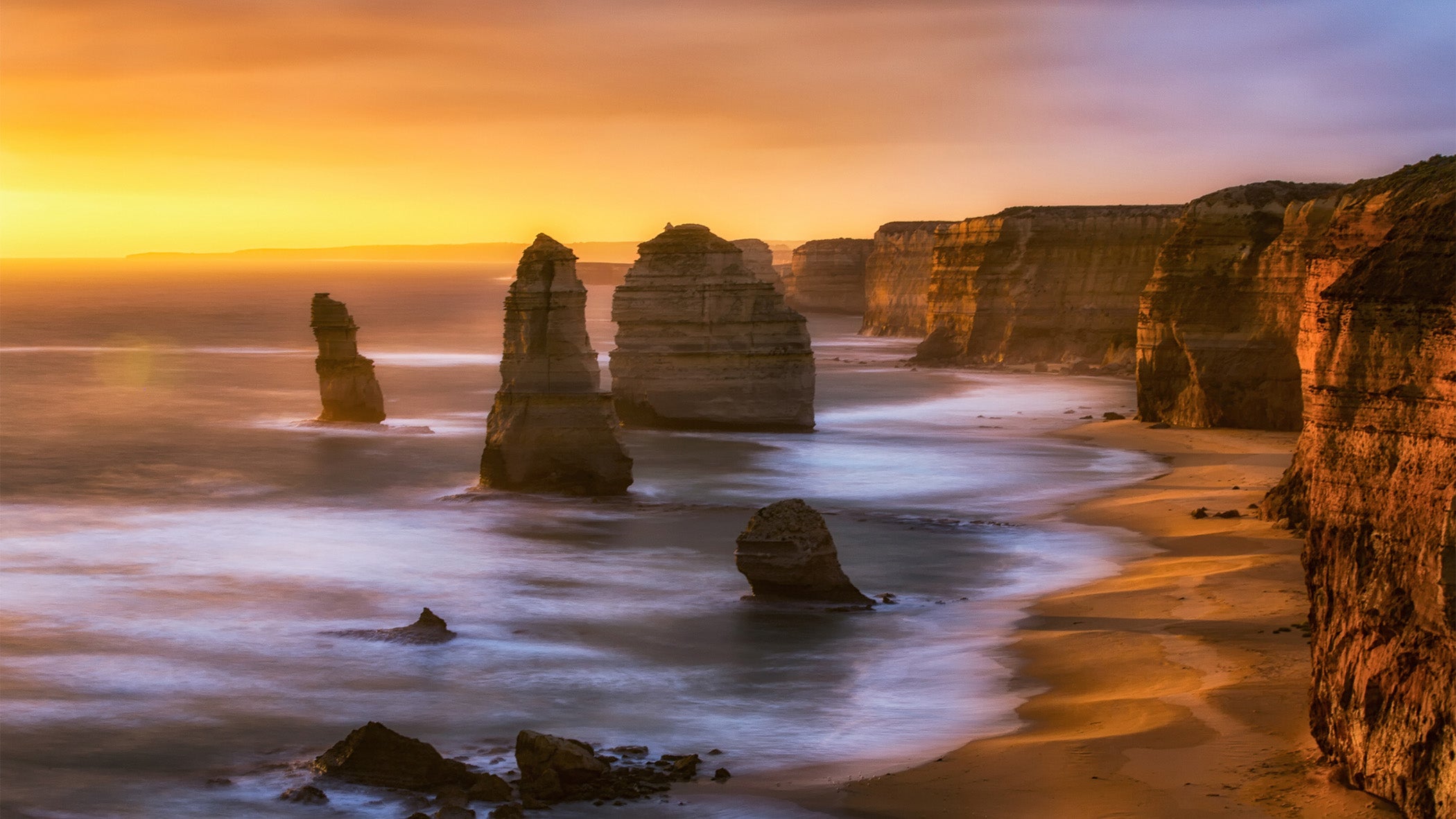 Named “The Twelve Apostles” long ago by locals, over time, their number has been reduced by erosion, including one dramatic collapse in 2005 that eyewitnesses described as sounding "like a building imploding." Indigenous people tell stories of these formations being creator beings, petrified in place while crossing sacred waters. Can you guess where in the world these magnificent sea stacks are located?