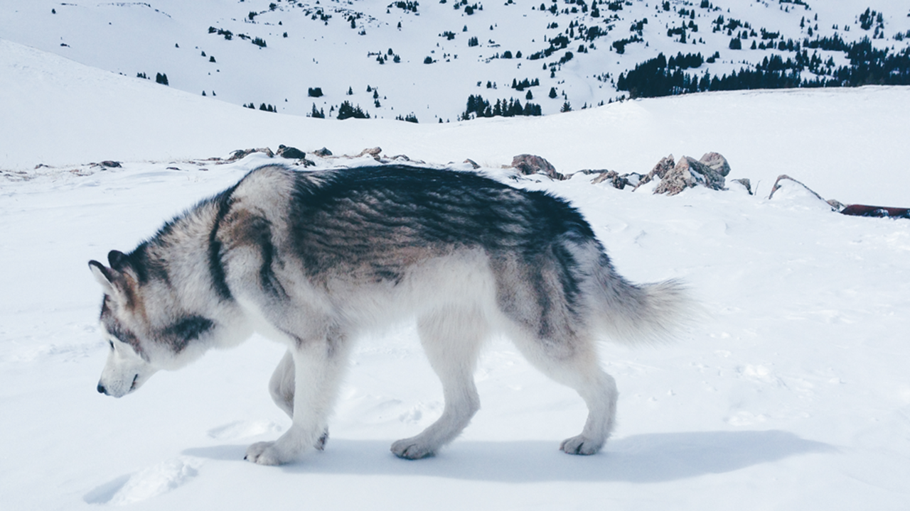 Though the genes of a domestic dog are more present than a wolf, Loki still has the tall height and stature of the kind of wolf one might see in places like Yosemite National Park. He even roams around the outdoors like one, accompanying his human to the snow-covered mountains of Colorado.