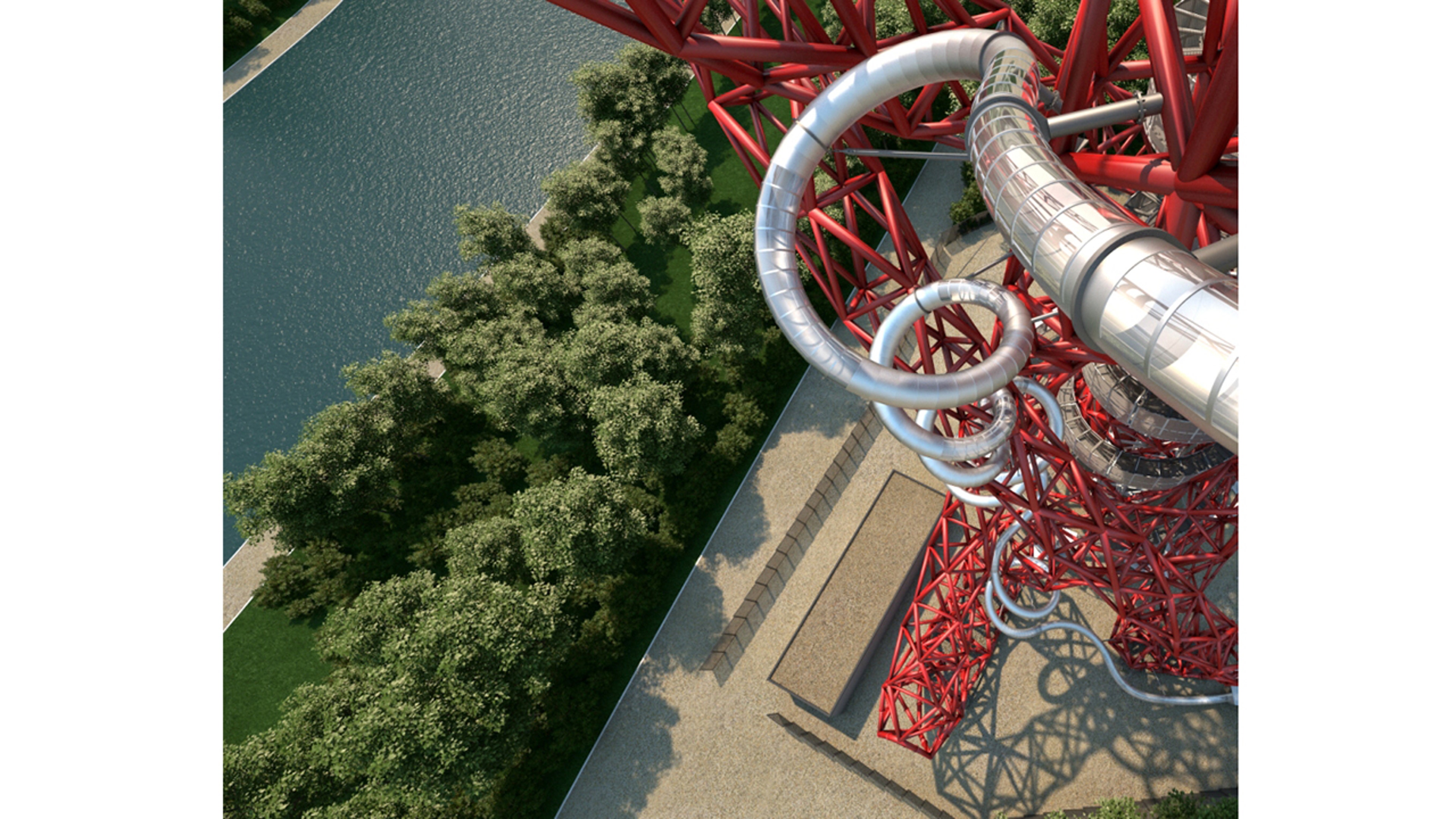 Set to open to the public on June 24, the 584-foot long slide, designed by artist Carsten Höller (developing on an initial proposal by Blur Architecture), is part of the 377-foot high Orbit, which was designed by sculptor Anish Kapoor for the 2012 London Olympics.