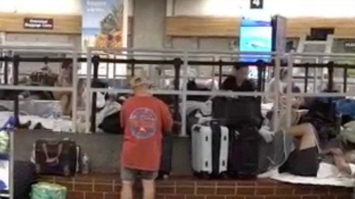 Kahului Airport on Maui remains open as thousands of tourists pack the terminals trying to get flights off the island. Several major airlines, including American, Southwest, United, and Alaska are offering to rebook travelers at no additional cost.