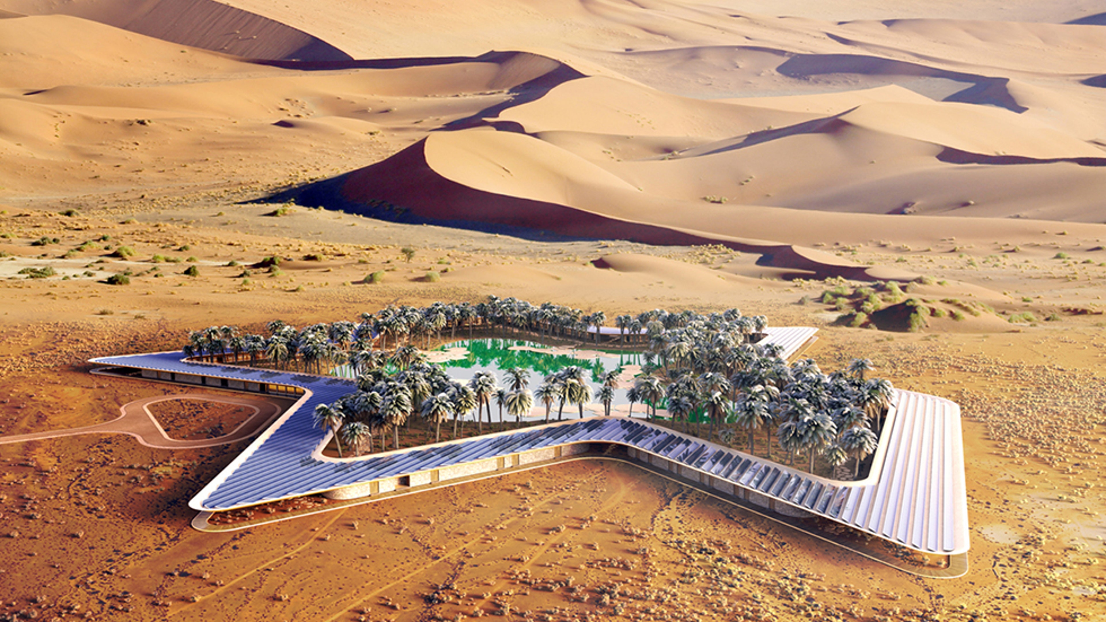 The Oasis Eco Resort in the United Arab Emirates is exactly that: an oasis. Centered around a spring in the desert in Liwa, the 90,000-square-foot community is completely sustainable.