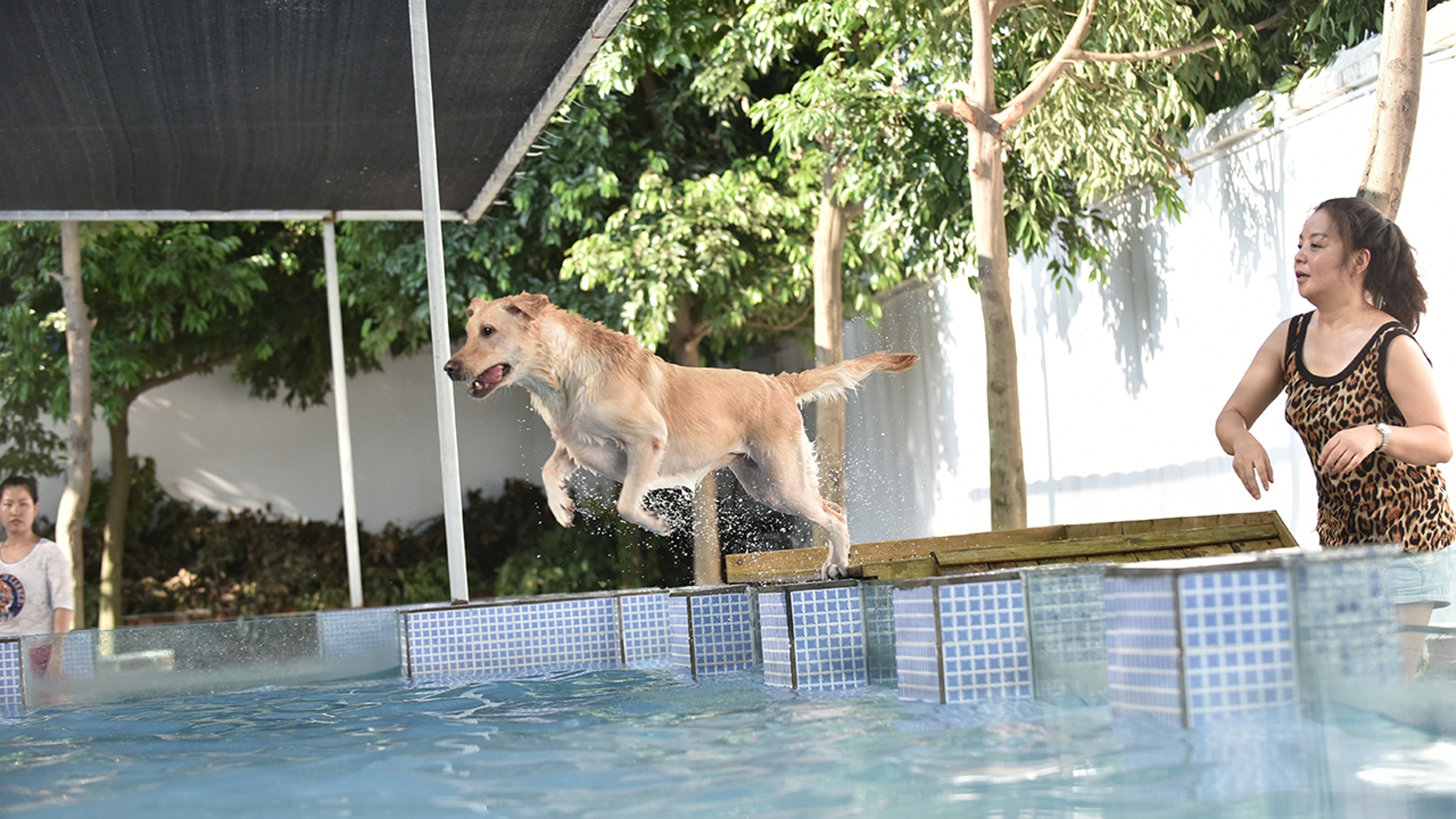 The Pet Pool lets pets swim and play in the swimming pool, and owners are even allowed to join in the fun. Staff members of the pool examine all pets before allowing them to swim.