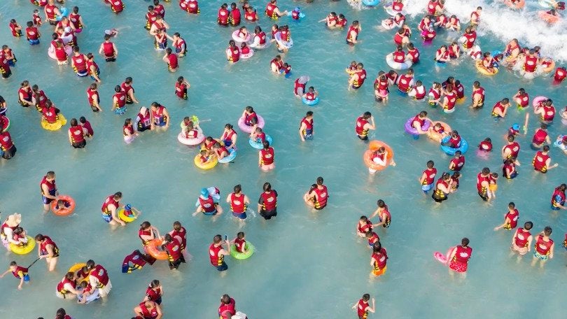 Aerial photos show a crowded water park in Zhengzhou, China, where tourists flocked as Thursday saw high temperatures. Heat in Zhengzhou reached 98 degrees Thursday and Friday, and the country has seen record temperatures throughout summer. The area has seen temperatures in the 90s since at least July 20. China is just one country of many the world over that has seen heat records shattered this season.