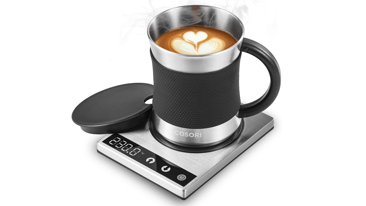 Tea and coffee lovers unite, this COSORI is a great warmer and mug set for the serious warm beverage drinker. Made from food-grade stainless steel, the mug comes with a heat-resistant handle and rubber to protect your hands. Control the temperature with a touch screen, with drink settings as high as 158 degrees Fahrenheit, and the hot plate setting as high as 230 degrees Fahrenheit.