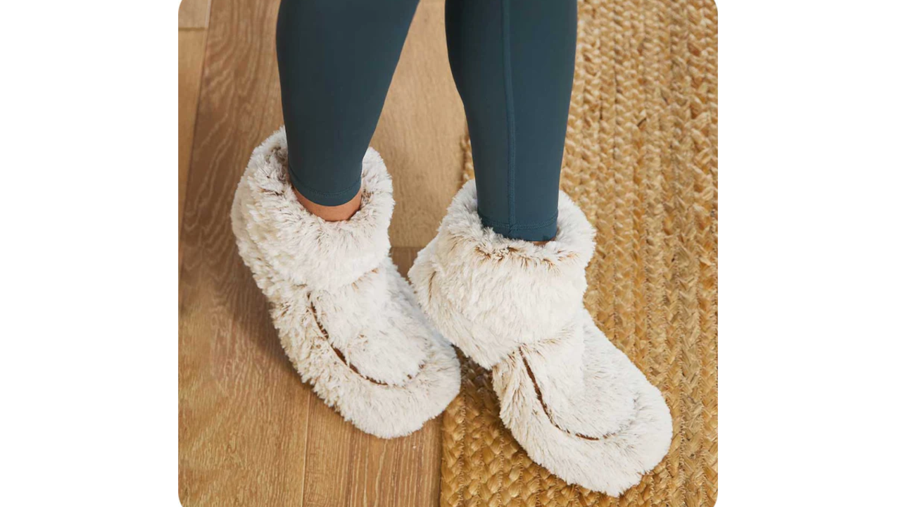 Imagine a fluffy slipper that feels like a cloud and has the warmth of a heating pad, and you’ve discovered the Warmies marshmallow boots. You can microwave them to heat up those cold, sore feet (with the relaxing scent of lavender), or chill them in the freezer in the summer for cooling relief. One size will fit women’s shoe sizes from 6 through 10 (U.S. sizing). And not to worry - this isn’t made from real fur.