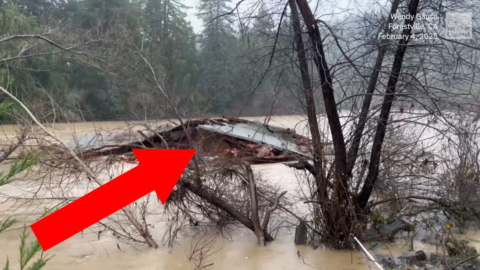 Eine Erdrutsch in Nordkalifornien hat ein Ferienhaus mitgerissen und in den Russian River geschoben. Glücklicherweise war niemand im Haus, als dies geschah. Die Behörden hatten bereits andere Häuser in der Umgebung rechtzeitig evakuiert. Dieser Vorfall ereignete sich nach intensiven Regenfällen, die durch einen atmosphärischen Fluss verursacht wurden und große Schäden in der Region hinterließen.
