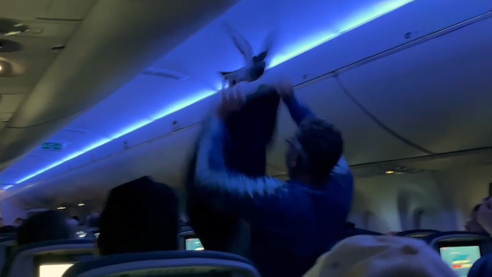 An Bord eines Delta-Air-Line-Passagiermaschine ist Panik und Chaos ausgebrochen: Zwei Tauben haben die Passagiere aufgeschreckt. Ein Video zeigt, wie ein Mann versucht, den blinden Passagier einzufangen. Die Crew hat die Situation schließlich unter Kontrolle gebracht. Die Tauben sind sicher vom Flugzeug entfernt worden.