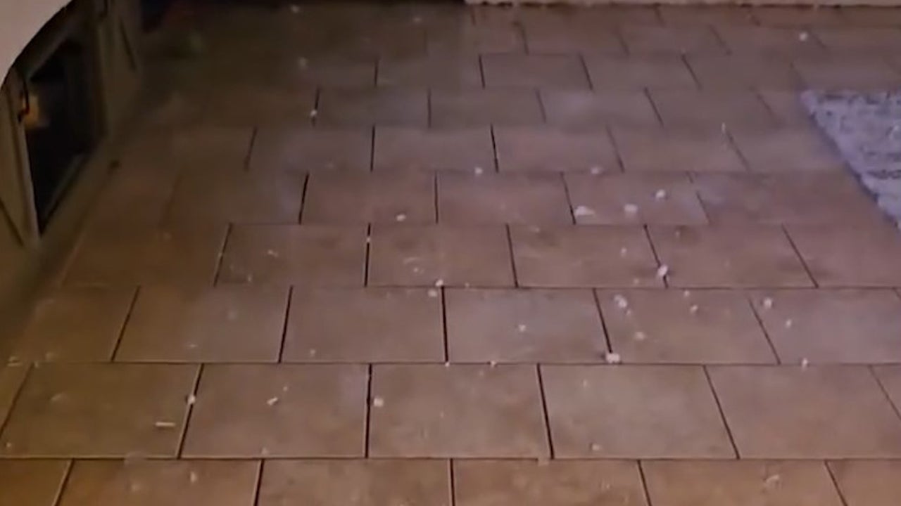 Da denkt man, dass man im Haus sicher ist vor Unwettern. Doch das ist nicht immer so, wie Hausbesitzer Terry Giles aus Kerrville, Texas, erfahren hat. Dort brachte ein Unwetter golfballgroße Hagelkörner hervor, die auf sein Dach einprasselten.