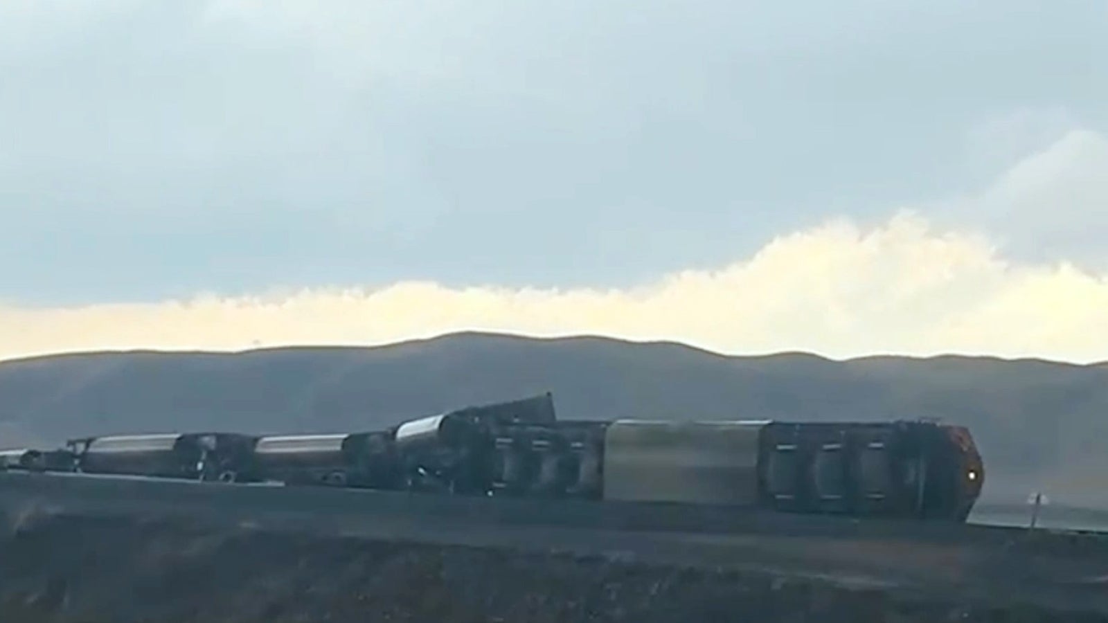 Im Nordwesten Nebraskas tobte am Sonntagabend ein riesiger Tornado. Der Wirbelsturm wütete zum Glück in einem unbewohnten Gebiet. Allerdings bekam ein Kohlezug die volle Wucht des Tornados ab. Westlich des Dorfes Hyannis warf der Wirbelsturm Dutzende Kohlewagen um.