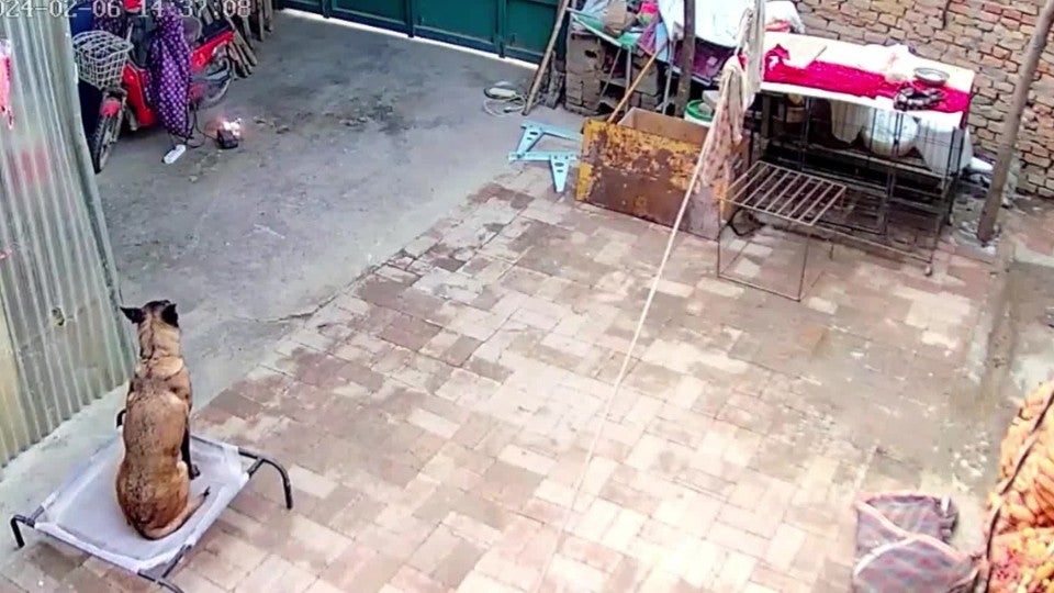 Ein Hund liegt im Innenhof, während sein Besitzer außer Haus ist. Plötzlich fliegen Funken aus einem Kabel. Der heldenhafte Vierbeiner zögert keine Sekunde.