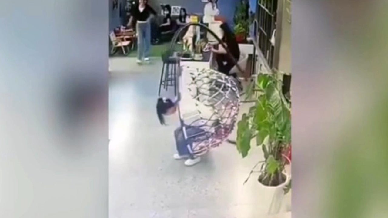 Da will man es sich in einem Egg Chair gemütlich machen und und dann das. Eine Frau in China setzt sich in einen Hängesessel, doch so ganz kippsicher ist das Ding nicht. Und das wird die Frau gleich auf peinliche Weise erfahren.