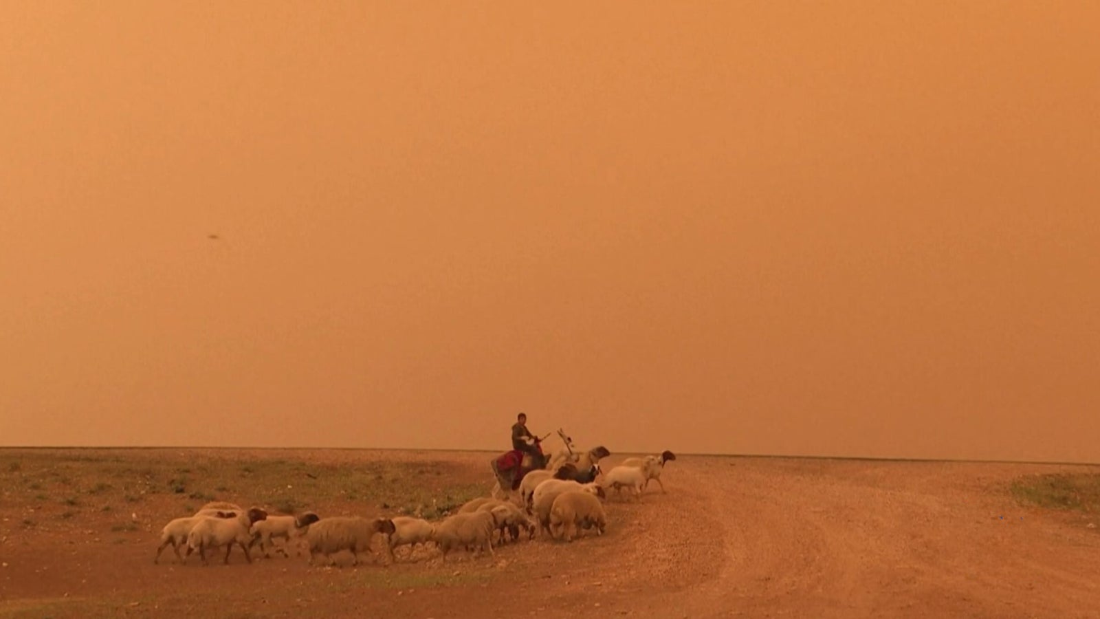 Ein heftiger Staubsturm färbt den Himmel im Nordosten Syriens orange. Das Video wurde am Stadtrand der von Kurden kontrollierten Stadt Qamishli aufgenommen. Bilder wie diese werden der UN zufolge in Zukunft häufiger auftreten. Forscher der Vereinten Nationen warnen, dass Staubstürme weltweit zunehmen.
