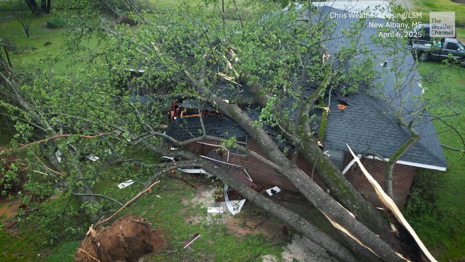 Eine Familie aus New Albany, Mississippi, hat mit viel Glück einen Tornado unversehrt überstanden. Die Hausbewohnerin erinnert sich an den dramatischen Moment, als das Unwetter ihr Haus erreichte. Das Unwetter kam, als sie alle sich gerade in Sicherheit bringen wollten.