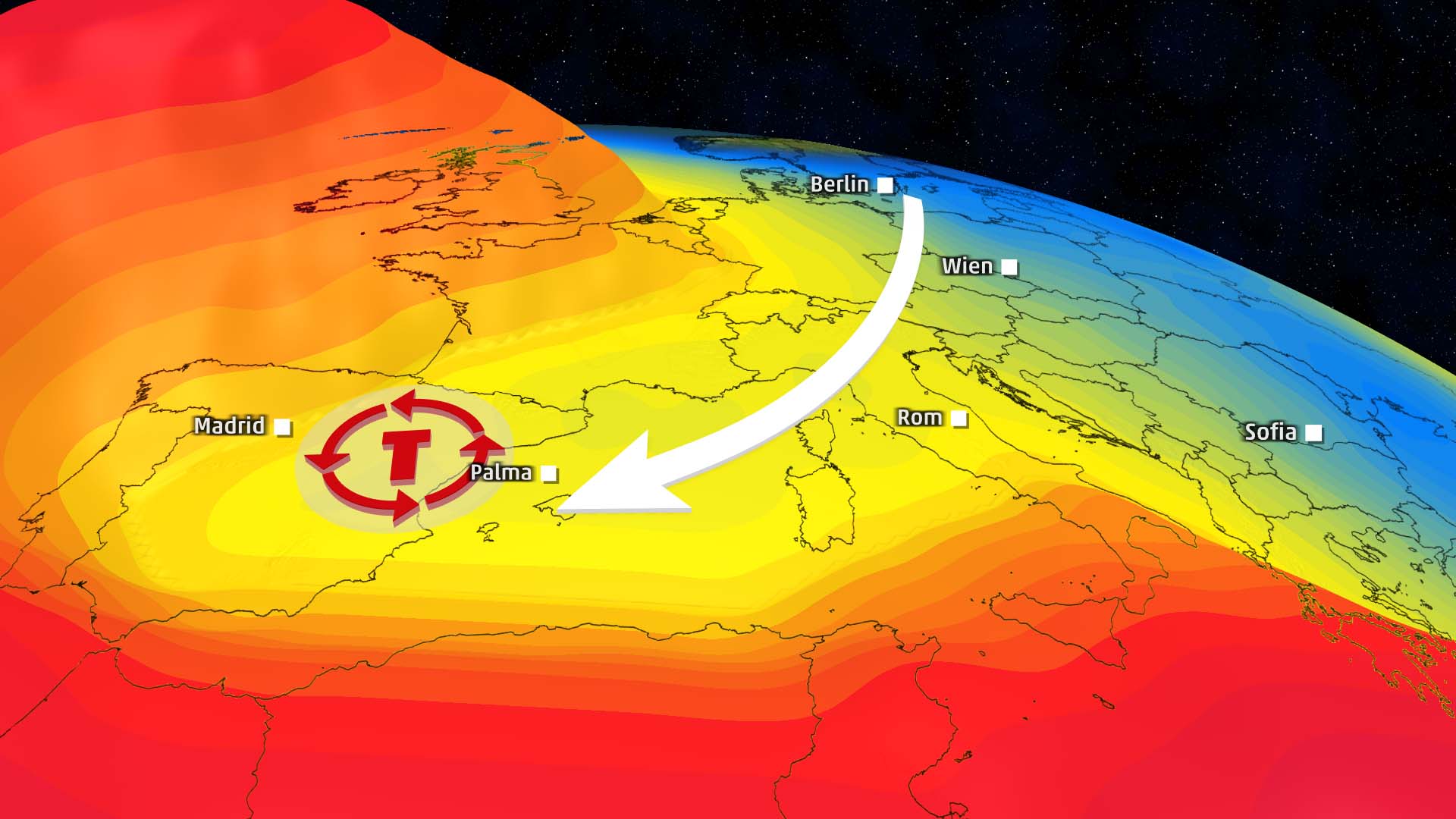 Sicher ist nur, dass es stark regnen wird in Spanien. Doch wo genau die Gewitter auftreten, das lässt sich noch nicht mit Sicherheit sagen. Es könnte Mallorca, Ibiza oder Menorca treffen. Aber auch Valencia oder den umliegenden Küstenstreifen.