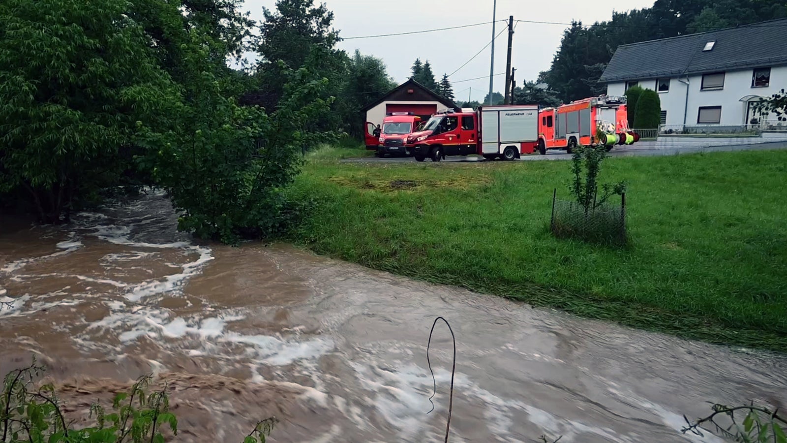 Überflutete Straßen, umgestürzte Bäume, ein Schornstein bricht zusammen: Unwetter haben in Sachen viele Rettungskräfte am Sonntag auf Trab gehalten. Vor allem das Vogtland und der Erzgebirgskreis waren betroffen.