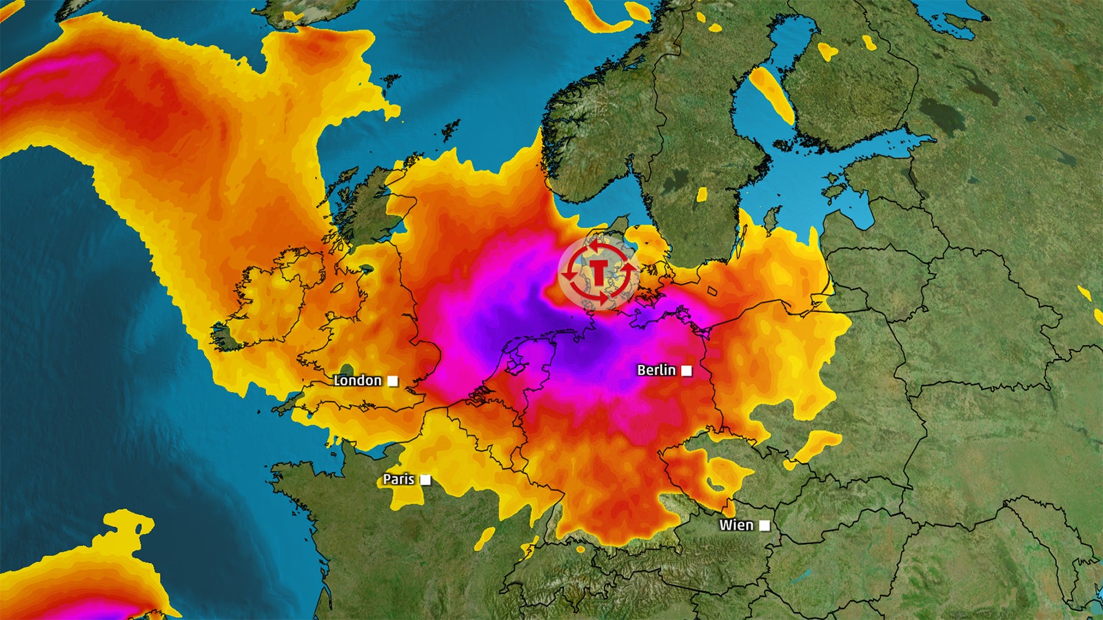 Im Prinzip trifft uns ein Herbststurm, der uns direkt in den Hochsommer katapultieren könnte. Noch ist nicht sicher, wie stark der Sturm wird und ob er uns direkt treffen wird. In einigen Wettermodellen muss man sich an der Nordseeküste vielleicht sogar auf Orkanböen bis 120 km/h einstellen und der ganze Norden würde von Sturmböen am Montag und Dienstag überzogen.