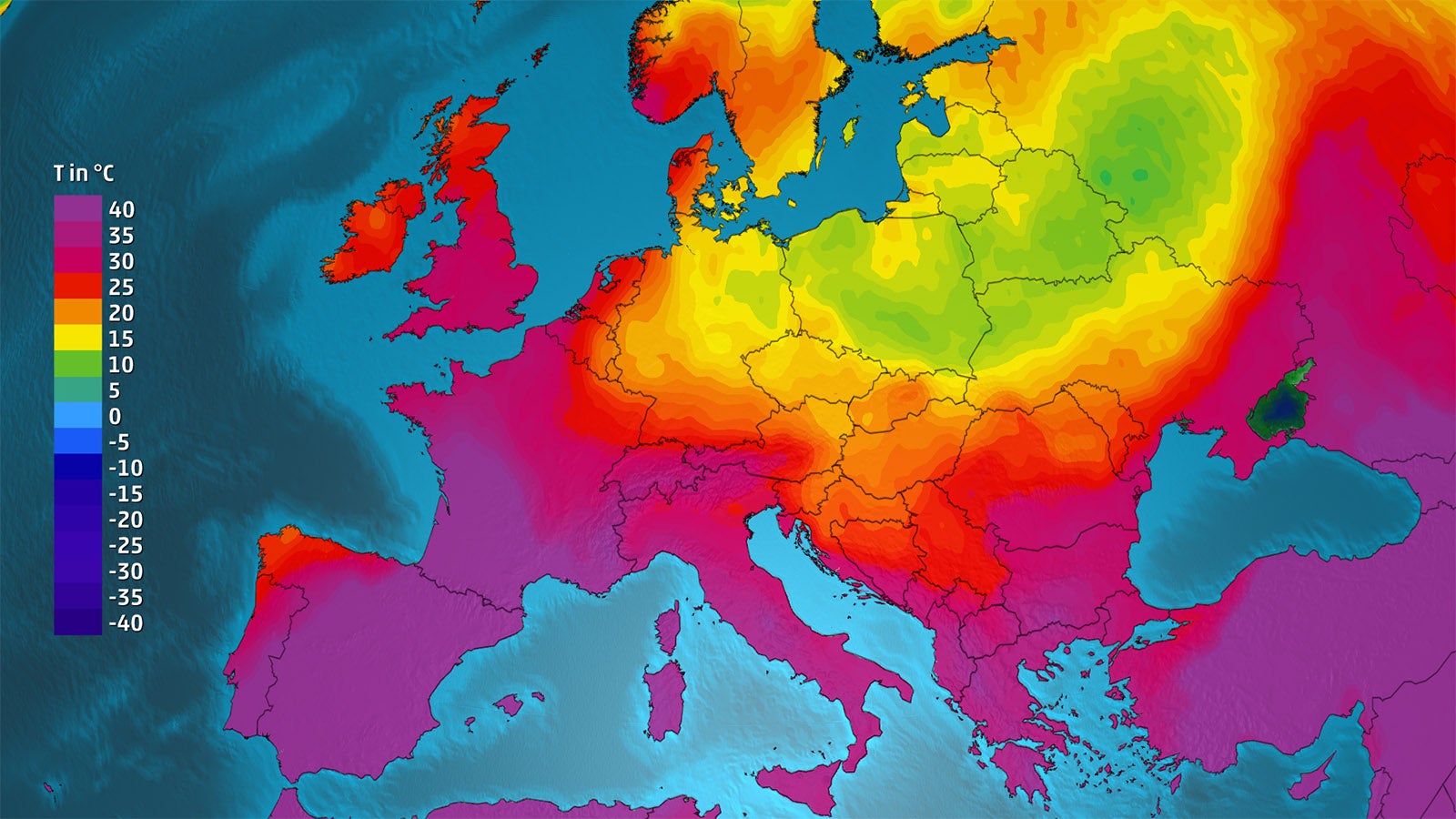 Im Südwesten steigen die Temperaturen an, am Oberrhein werden über 30 Grad erreicht. Im Rest des Landes ist es angenehm warm, zwischen 22 Grad an den Küsten und bis zu 27 Grad im Inland. Es bleibt meist trocken und sonnig. Nur im äußersten Südwesten über dem Südschwarzwald sind Hitzegewitter möglich.