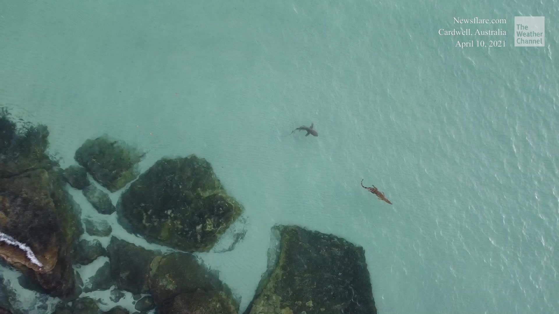 Kampflustiger Hai pirscht sich an Krokodil heran - Videos from The Weather Channel