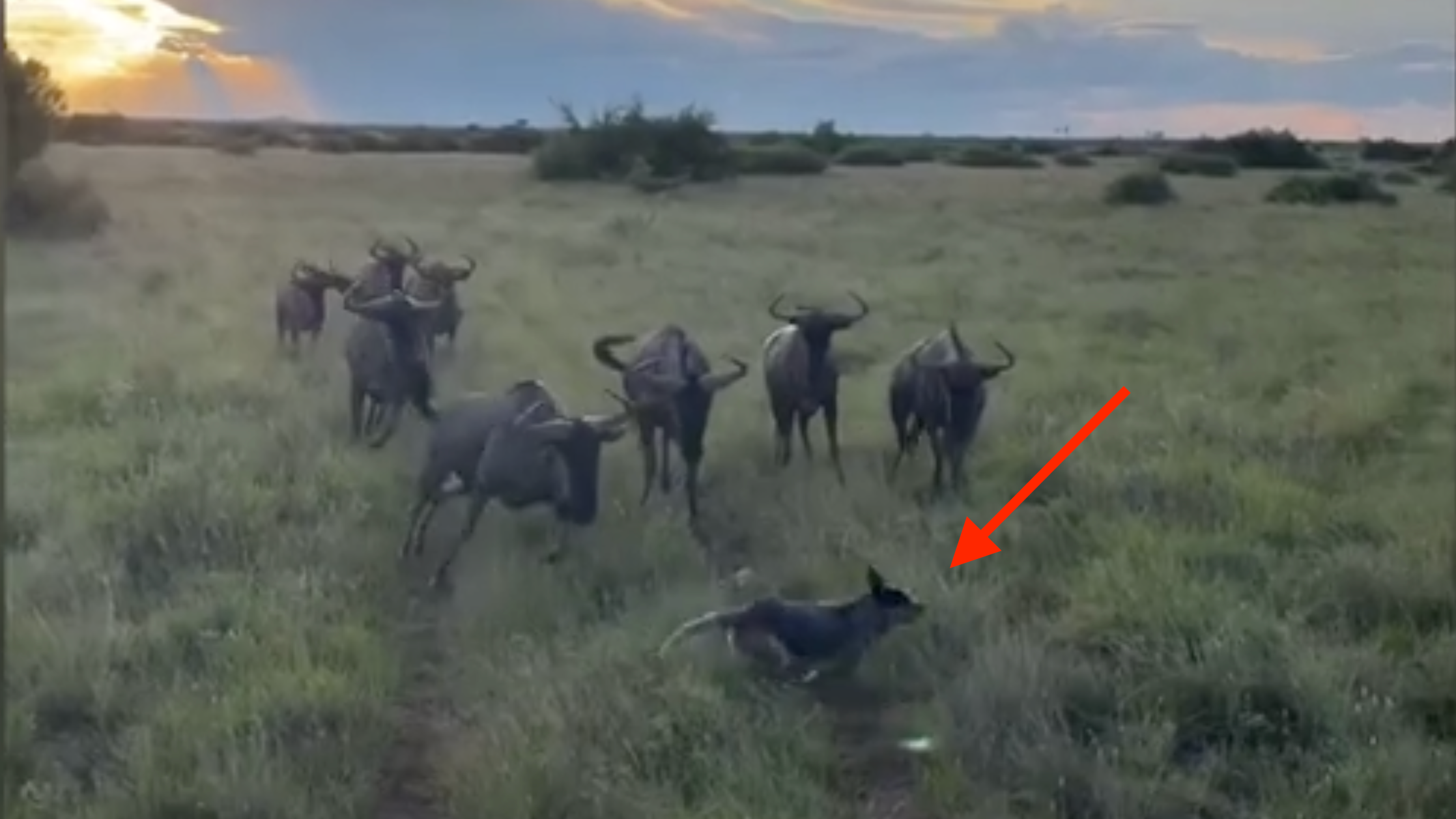 Bei einem Ausflug mit Herrchen und Frauchen wurde Hund Steven mit einer Herde Gnus konfrontiert. Angst kannte er dabei nicht!