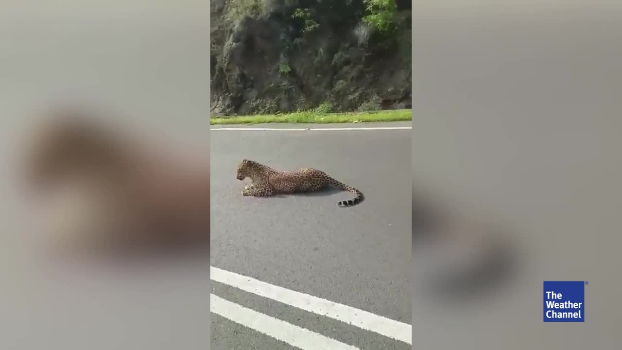 Leopard ruht sich auf Straße aus – Stau - Videos from The Weather Channel