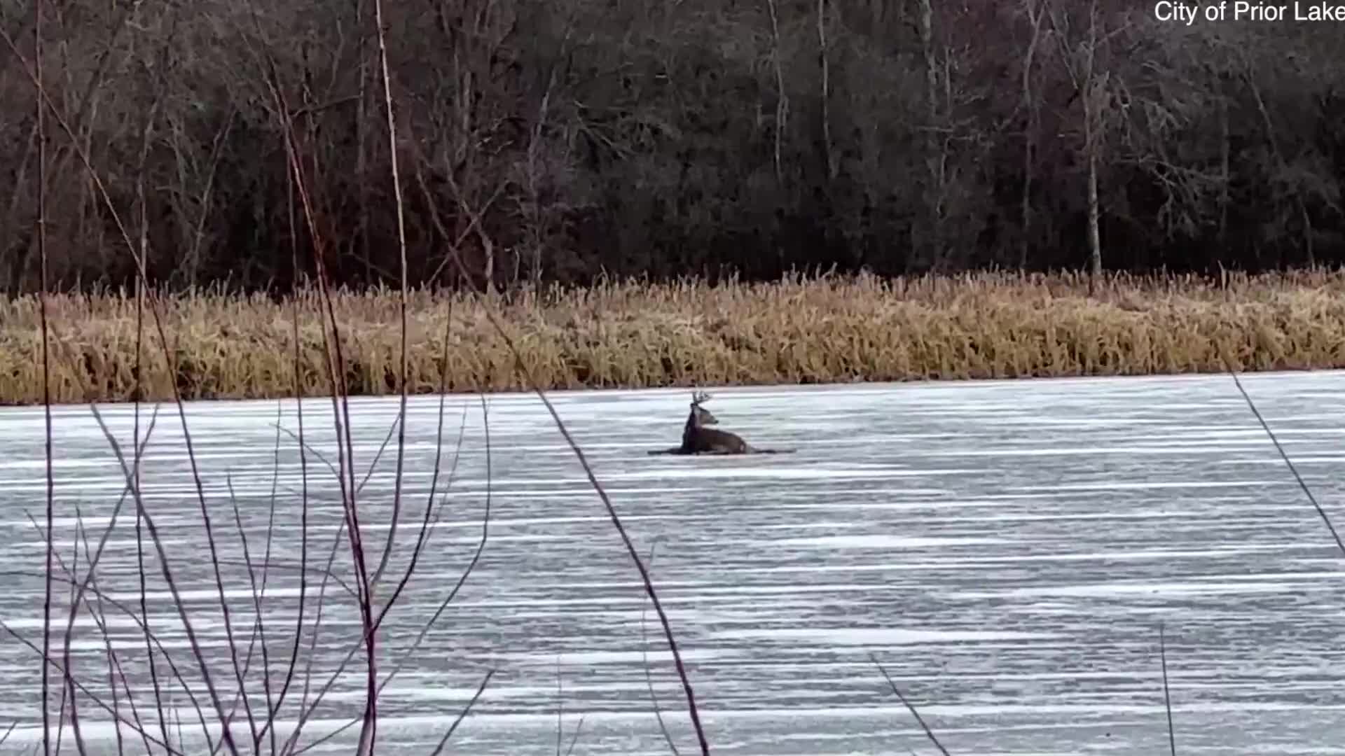 In den USA saß ein Reh auf einem zugefrorenen See fest. Anwohner riefen die Feuerwehr. Die eilte zur Hilfe und rettete das Wildtier.