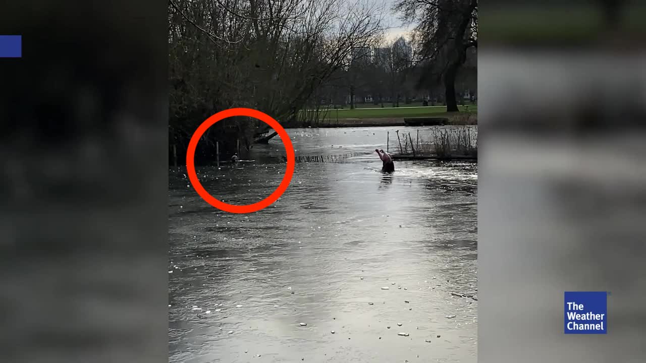 Welpe sitzt in gefrorenem See fest – Herrchen eilt zur Rettung - Videos from The Weather Channel