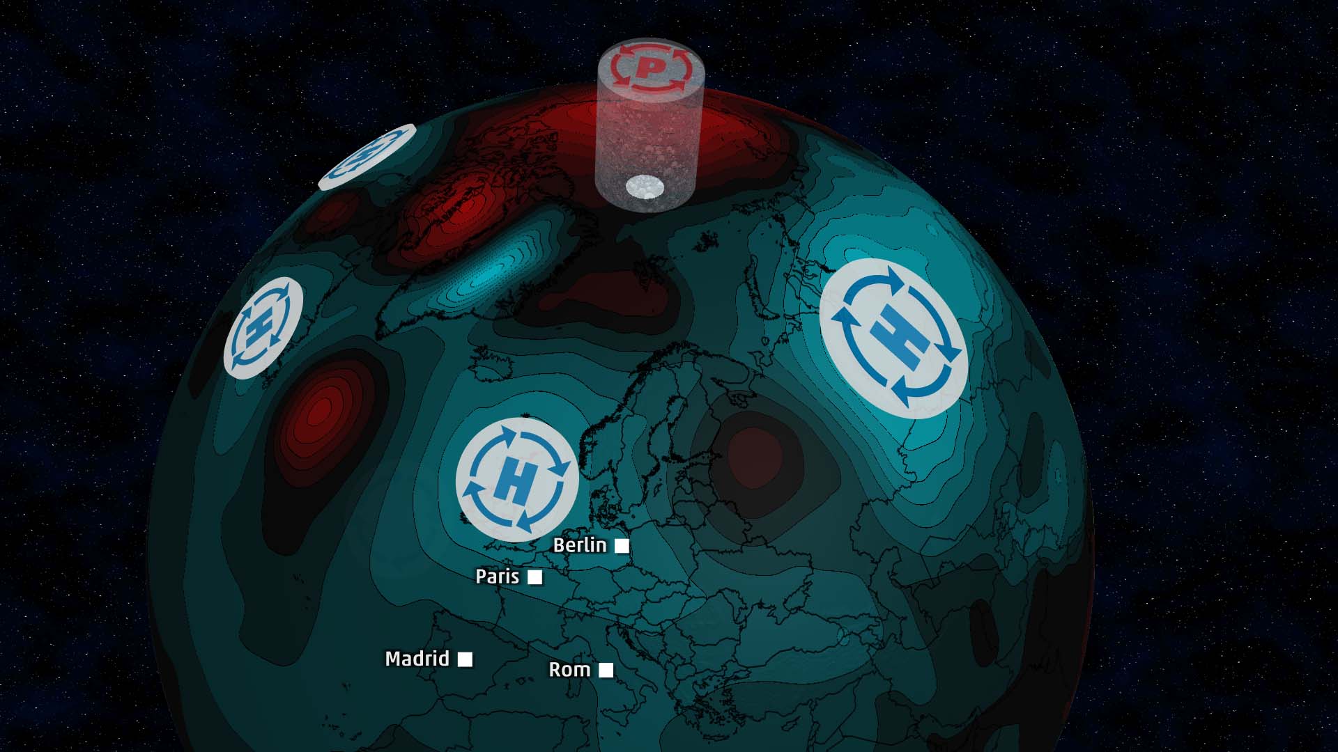Dann haben wir eine sogenannte meridionale Wetterlage. Warmluft wird von Süden nach Norden geführt. Auf der anderen Seite kann arktische Kaltluft aus Norden in die mittleren Breiten ausbrechen.