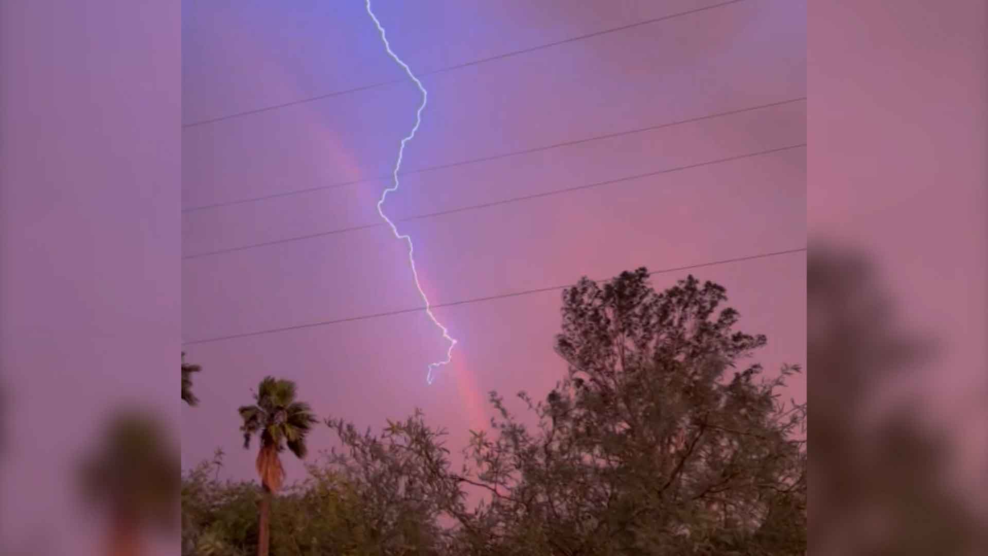 Während eines Gewitters in Tucson, Arizona, löste sich ein Blitz direkt über einem Regenbogen.