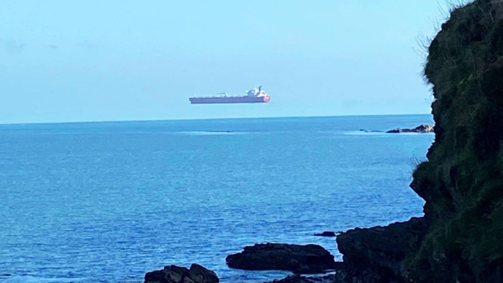 Auf den ersten Blick scheint dieses Schiff über dem Wasser zu schweben, während es Richtung Ärmelkanal schippert. Verantwortlich für diese Illusion ist eine sogenannte Temperaturinversion.