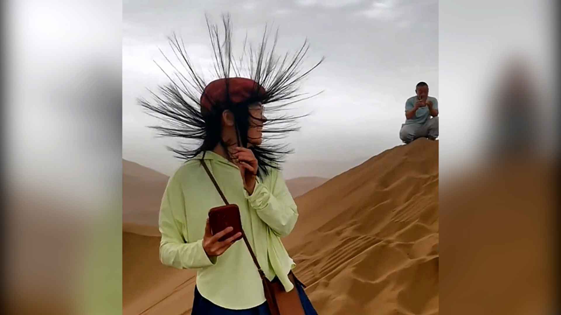In einer Wüstenregion Chinas standen diesen Touristen plötzlich die Haare zu Berge. Doch was hier wie ein großer Spaß aussieht, kann auch schnell gefährlich werden.