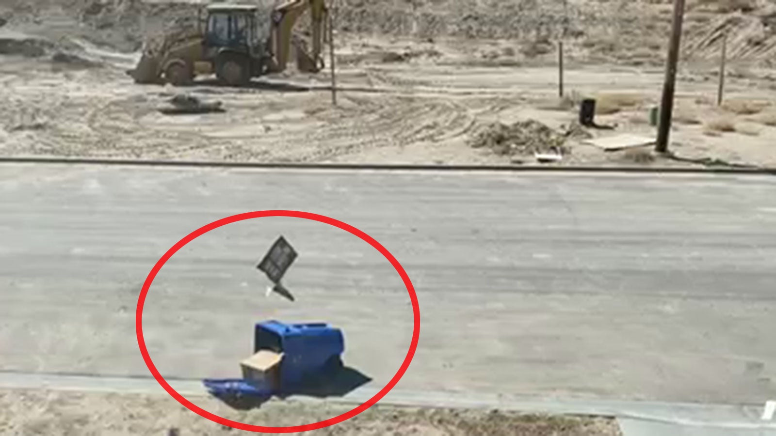 Ein Staubteufel in Idaho ist im Begriff, sich in einen Müll-Tornado zu verwandeln. Der Besitzer der Tonne kann nur hilflos dabei zusehen, wie sein Abfall über die ganze Straße verteilt wird.