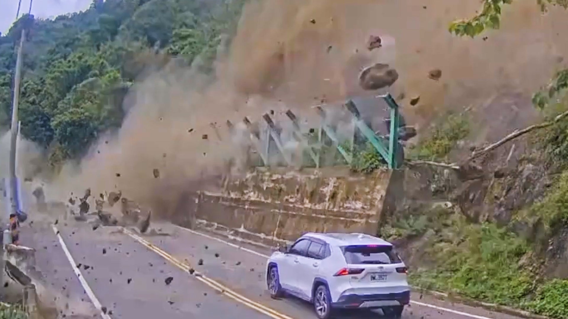 Un video dramático captó un aterrador desprendimiento de rocas en Taiwán. Dos autos fueron golpeados por rocas que caían, pero cuando ves las consecuencias, podrías decir que las personas dentro de esos autos tuvieron mucha suerte.