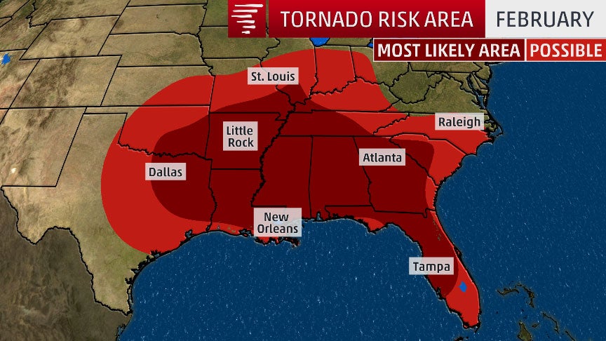 Tornado Risk Areas in February