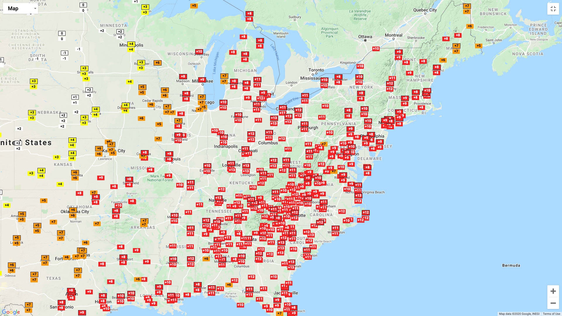 Highs Thursday are forecast to be 10 to 20 degrees warmer than average from the upper Midwest to the Northeast, which means most locations in those regions should have temperatures in the 30s and 40s.